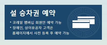 명절 승차권은 KTX 마일리지, 일반열차 할인 쿠폰 적립 대상에서 제외됩니다.