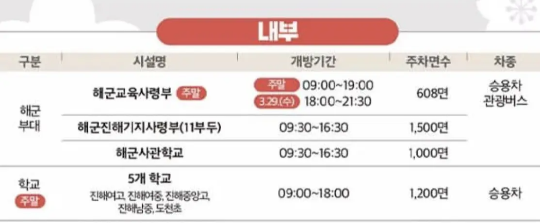 진해 군항제에 참가하실 때 주차 걱정 없이 편리하게 이동할 수 있도록 무료 셔틀버스를 이용