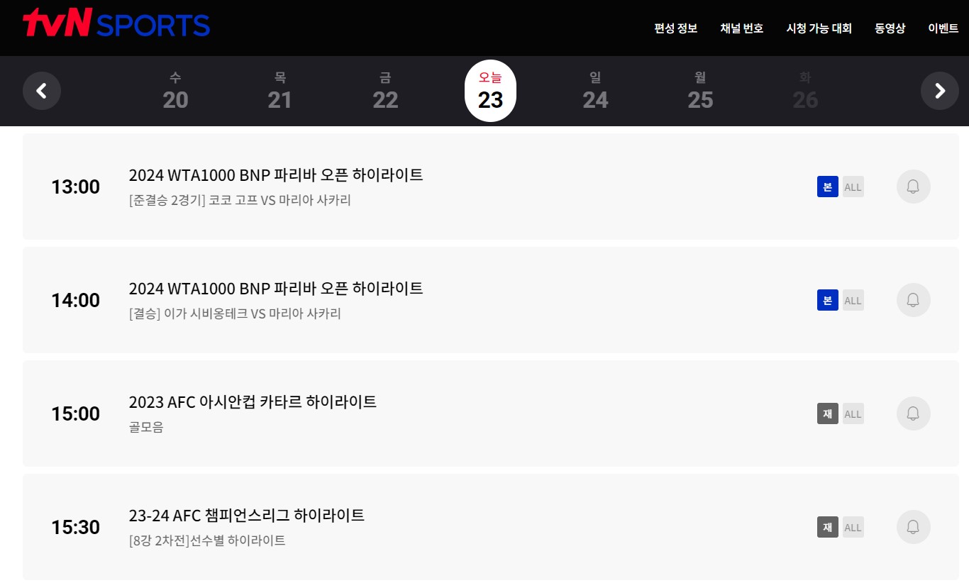 중계 일정: