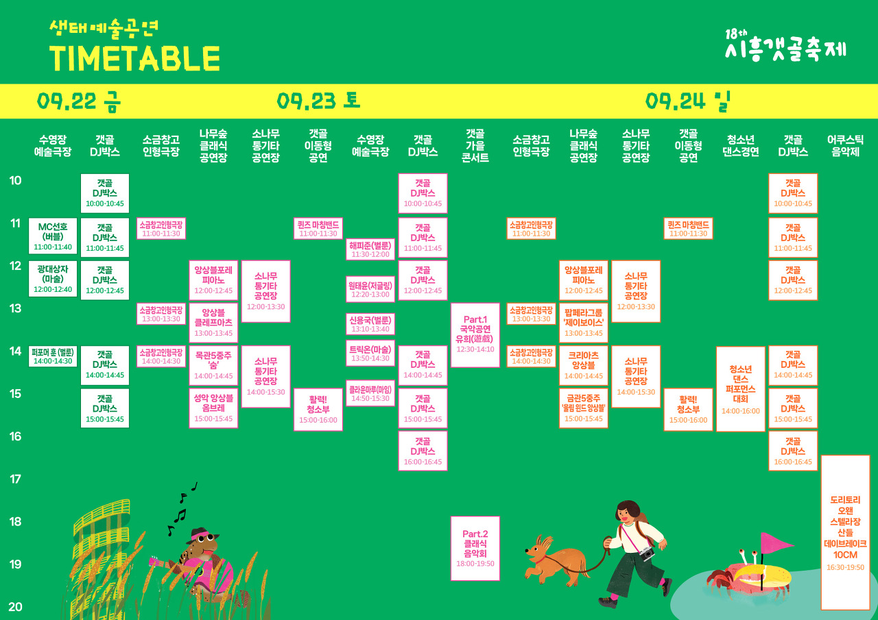 3. 생태예술공연 (어쿠스틱음악제/소금창고인형극장/수영장 예술극장/나무숲 클래식 공연장/소나무 통기타 공연장/갯골DJ박스/갯골이동형공연)