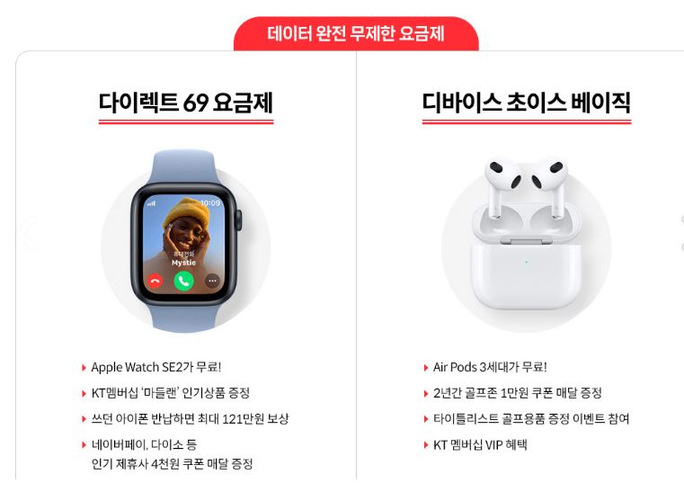 디즈니 3개월 무료, 안심폰 케어, 디바이스 초이스 요금제, KB국민 제휴카드 캐시백 7만 원 등