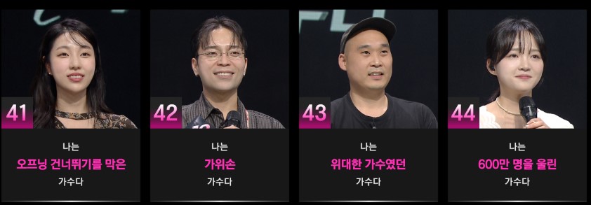 이 정보를 토대로, 각 참가자와 출연진의 배경과 경력을 자세히 알 수 있습니다. 이들이 함께