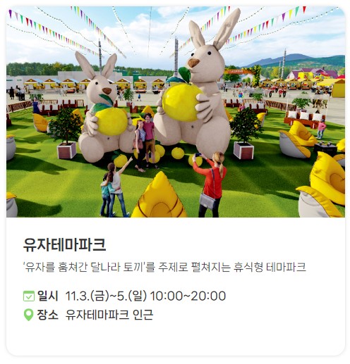 유자 테마파크 : 유자를 주제로 한 테마파크에서 다양한 활동을 즐깁니다.